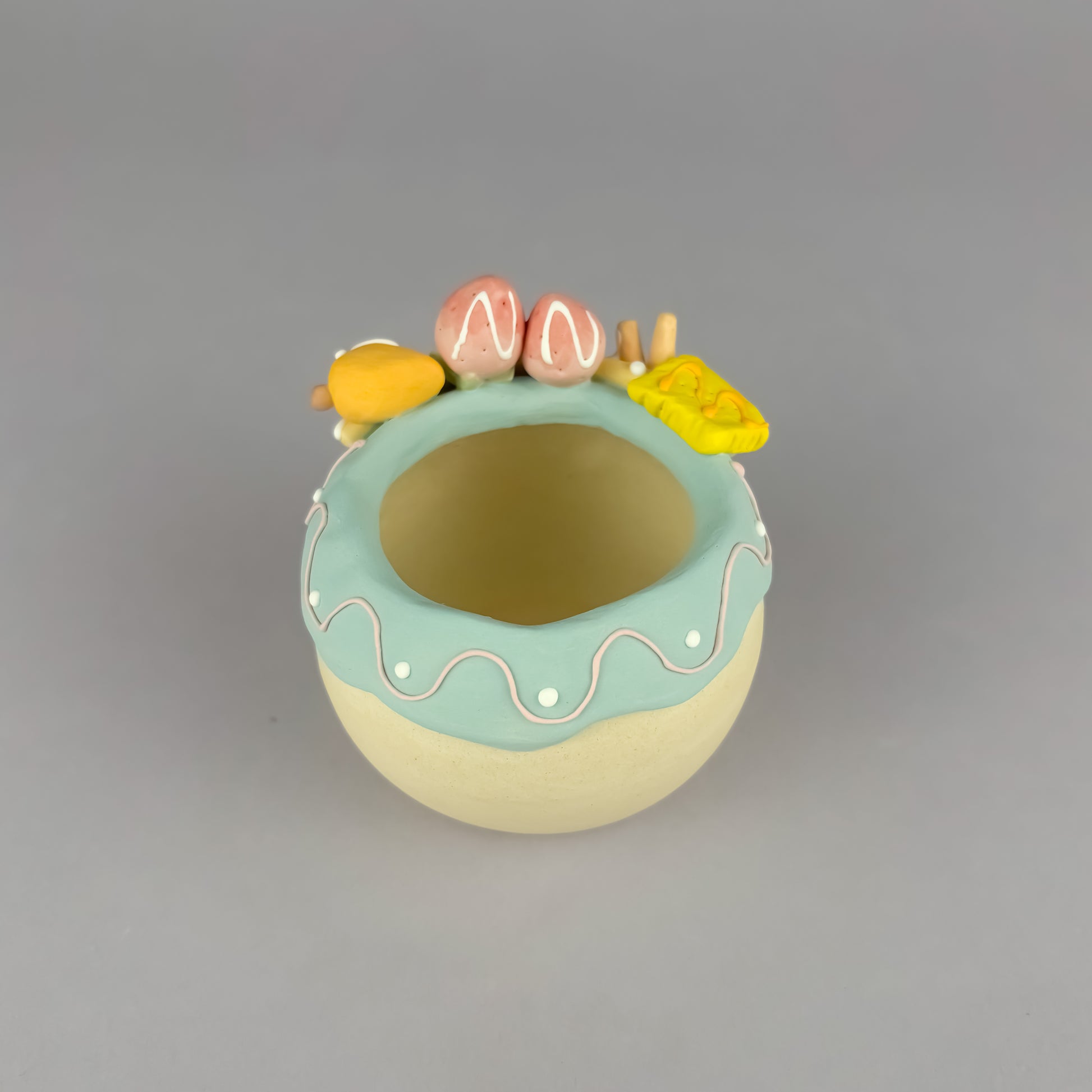 Add a sweet touch to your succulent collection with this handmade cake-style unglazed succulent pot! Designed to look like a frosted dessert, this adorable planter features soft pastel “icing” details and a smooth natural clay body that pairs perfectly with succulents.
